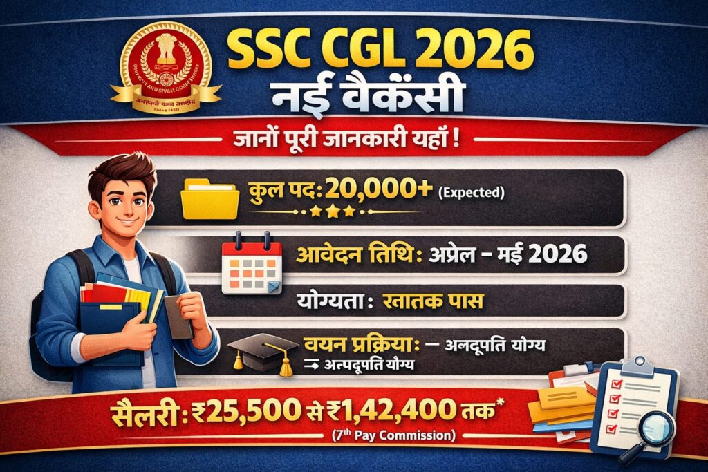 SSC CGL 2026 के तहत 20,000+ पदों पर भर्ती आने की संभावना हैं | यह संख्या आधिकारिक नोटिफिकेशन जारी होने के बाद अस्पस्ट होगा |
